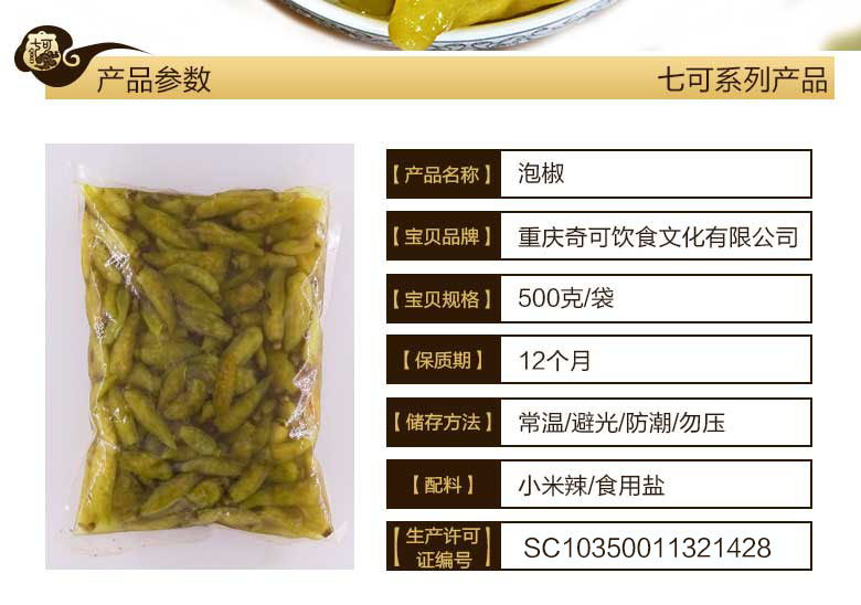 重慶七可泡野山椒500g