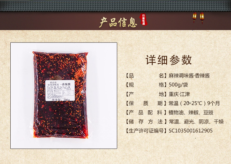 渝品鴻香辣醬500g