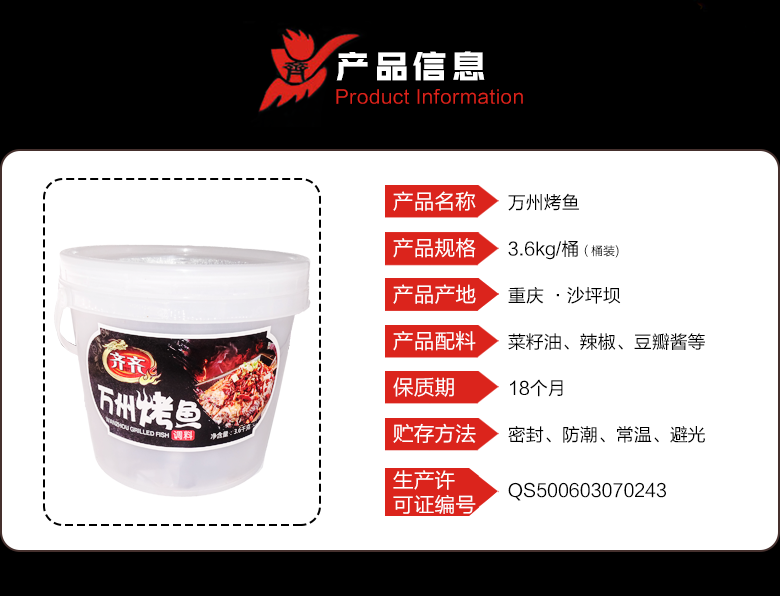 重慶齊齊餐飲 萬州烤魚(香辣味)3.6kg